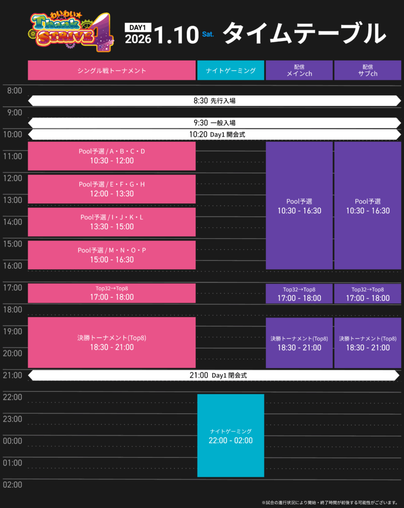 day1 – 1/10(土) シングル 定員256名(ダブルエリミネーション)