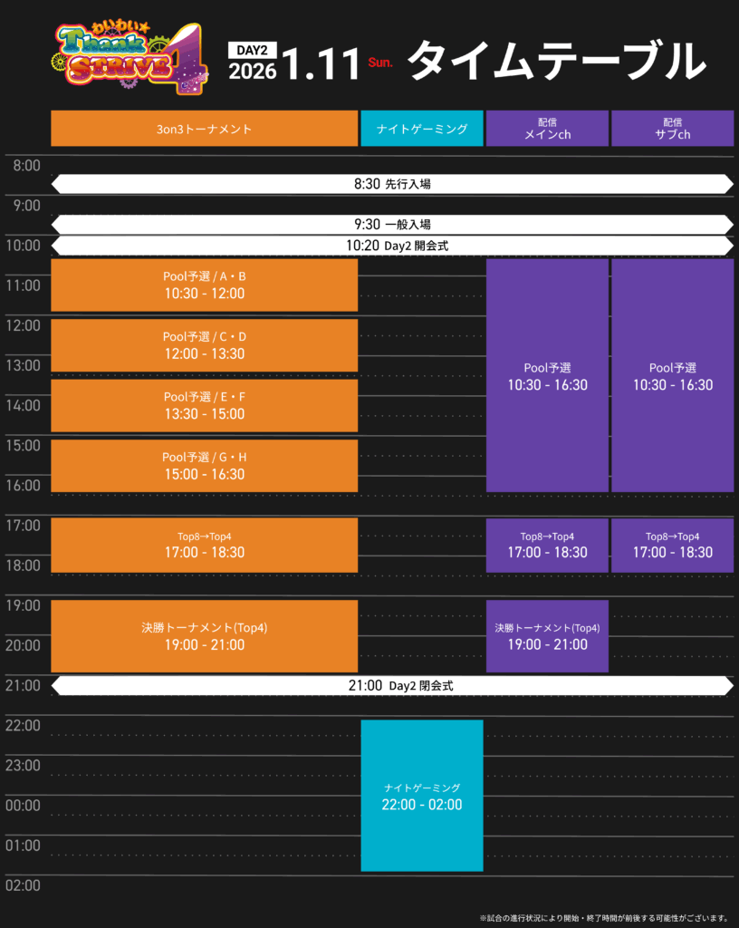 day2 – 1/11(日) 3on3 定員128チーム(シングルエリミネーション) - 参加費